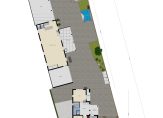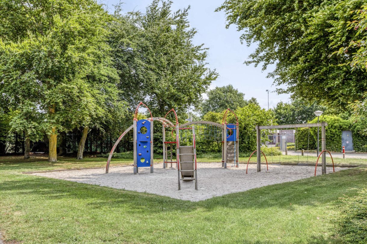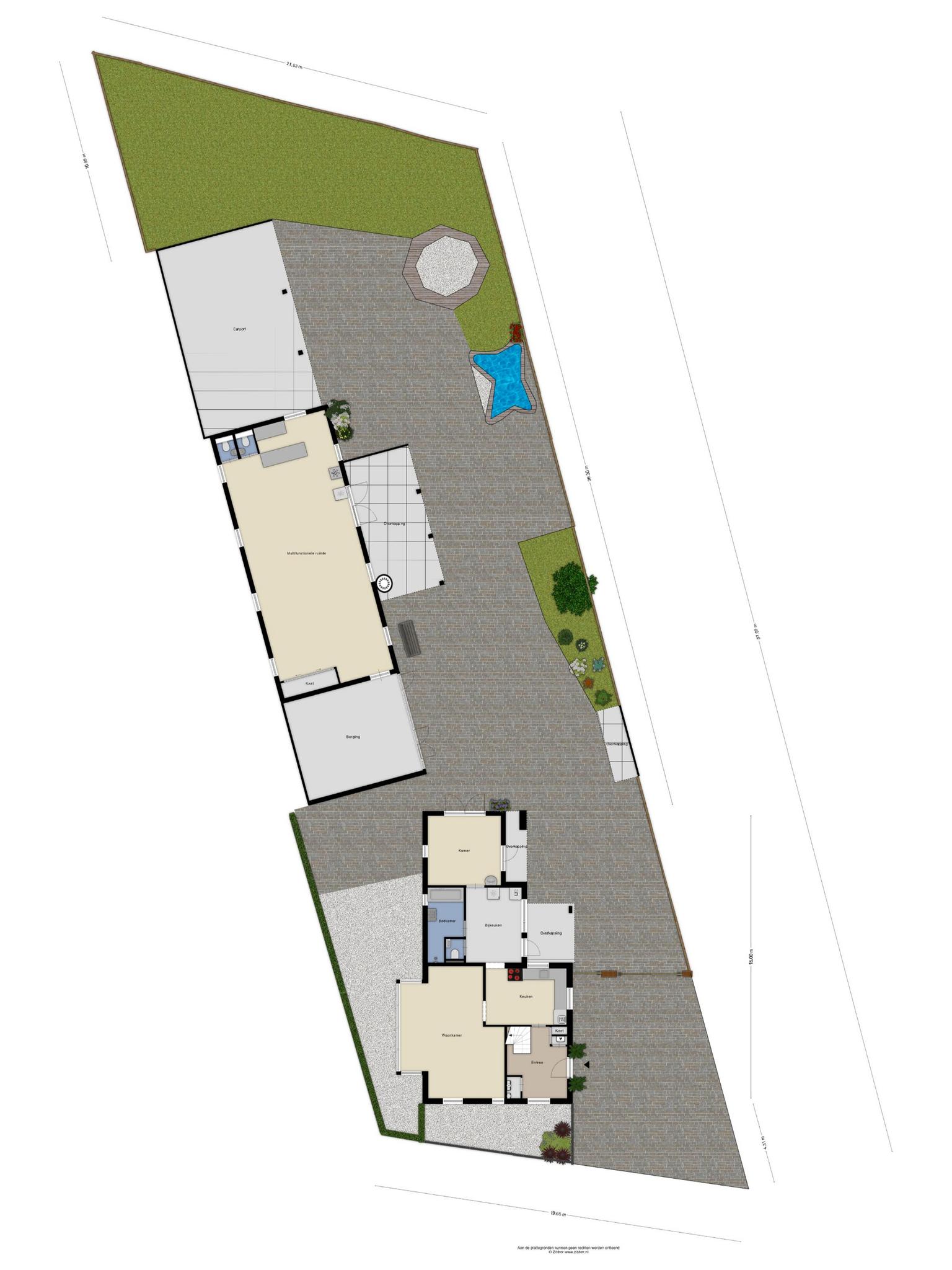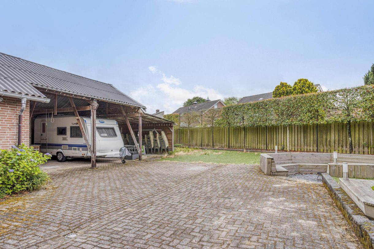 De tuin is grotendeels verhard met betonklinkers en verder voorzien van een gedeelte met kunstgras, een vijver, verhoogd terras met houten vlonderplanken en een zitkuil. Door de aanwezige verharding en de grote dubbele poort aan de voorzijde van de woning is het bijgebouw ook makkelijk bereikbaar.