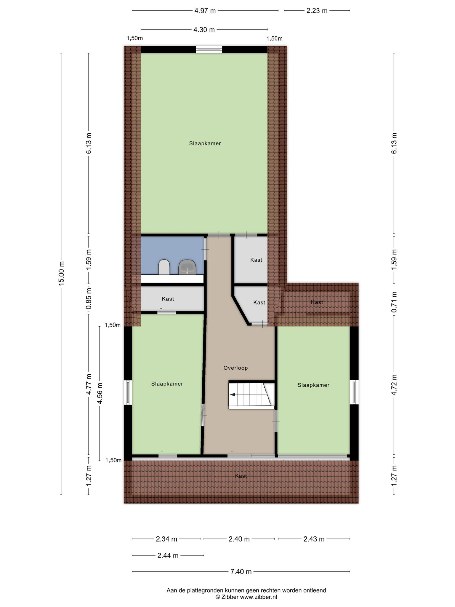 Op de 1e verdieping is een royale overloop met toegang tot 2 slaapkamers aan weerzijde van de woning en nog 1 grote slaapkamer boven de achterbouw. Tussenin zit een doorloop met bergruimte en een toiletruimte met wastafel. Op de slaapkamers is airco aanwezig. Een luik geeft toegang tot een vliering voor extra bergruimte.