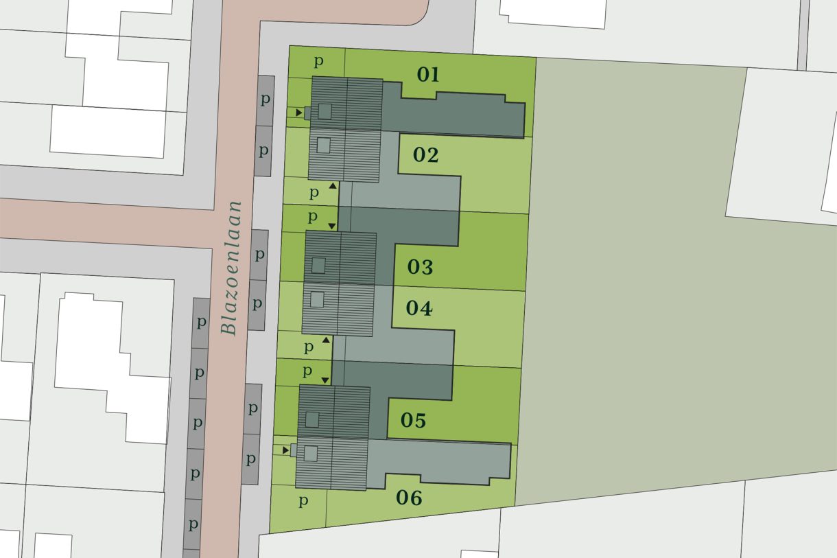 In de woningen aan de Blazoenlaan ervaart u volop licht en ruimte dankzij het uitgekiende ontwerp en de praktische indeling. Hierdoor worden binnen en buiten optimaal met elkaar verbonden. Iedere woning beschikt over een bijzonder riante achtertuin. In de fijne voortuin is een parkeerplaats op eigen terrein voorzien.