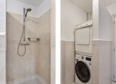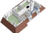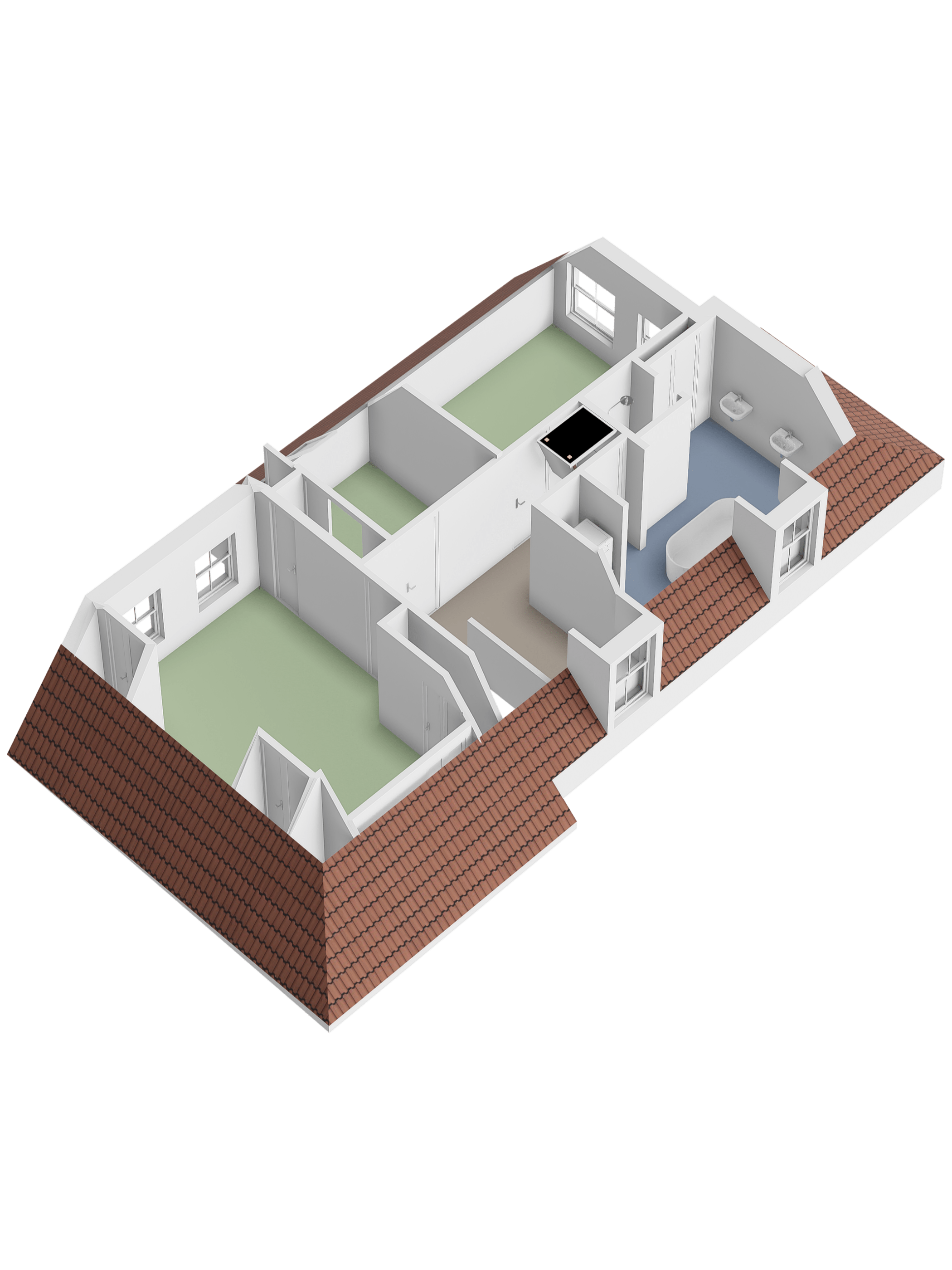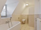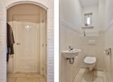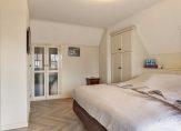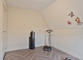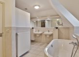 Op de 1e verdieping is een ruime overloop met dakkapel en airco. Er is toegang tot 3 slaapkamers en een ruime badkamer. De slaapkamers en overloop hebben een mooie ‘novilon’-vloerafwerking en er zijn volop bergkasten aanwezig op de grootste en kleinste slaapkamer. De badkamer beschikt eveneens over een dakkapel en is compleet uitgevoerd met een ligbad, inloopdouche, dubbele wastafel, douchetoilet en beschutte hoek met de witgoedaansluitingen. Er is een flinke bergzolder bereikbaar met een vlizotrap vanuit de overloop. Op zolder hangt de Nefit combiketel, is een waterontharder geplaatst en staat de centrale stofzuiginstallatie.