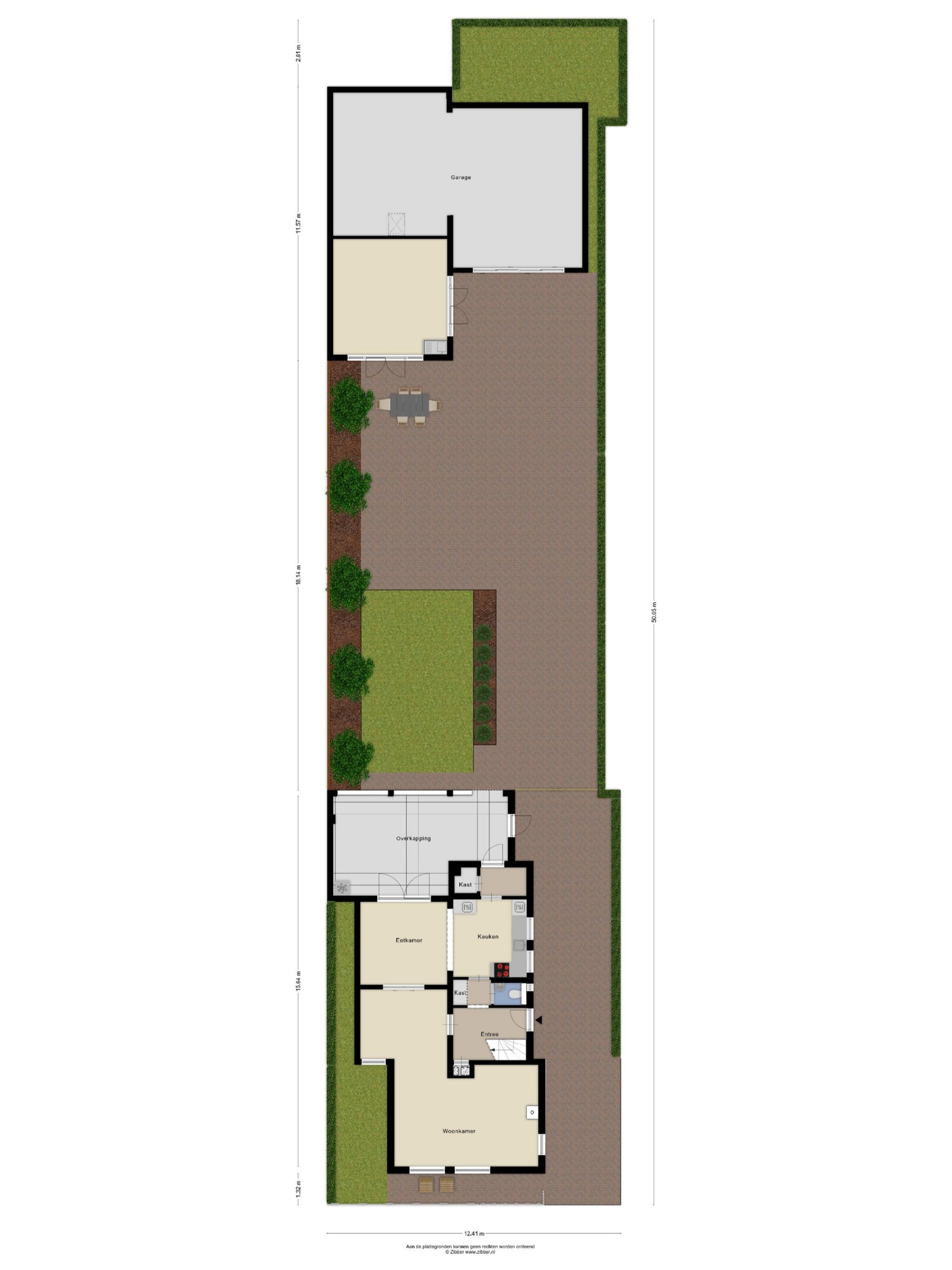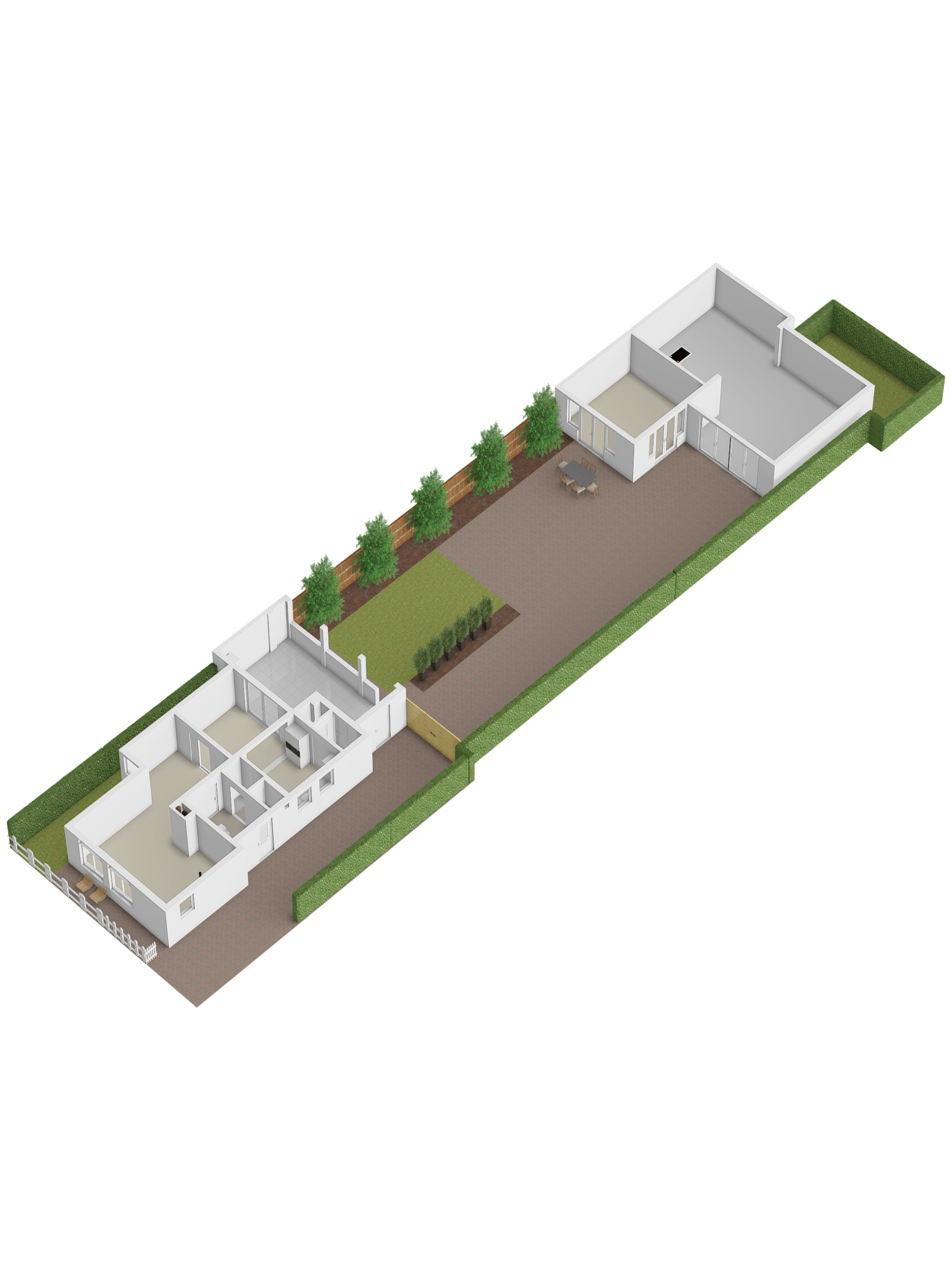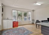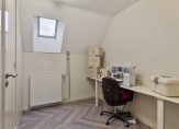 De tuin is volledig ommuurd en biedt volop privacy. Daarbij is de tuin redelijk onderhoudsvriendelijk aangelegd met een kunstgras gazon, een flinke oprit met gebakken klinkers, leibomen en coniferen haag. Verder is de tuin met een grote elektrische poort afgesloten van de oprit. Achterin staat een groot bijgebouw ingericht met een kantoor-/praktijkruimte en flinke garage. Deze garage is ruim 65 m² groot en biedt ruimte voor het stallen van enkele auto’s en een de nodige hobby-/werkruimte. Er is ook een grote zolder voor extra opslagruimte. De kantoor-/praktijkruimte aan de voorzijde is een mooie ruimte van circa 24 m² met beschikking over verwarming en koeling door middel van een airco en er is een keukenblokje. Verder zijn er openslaande deuren naar de tuin/oprit. Ideale ruimte om aan huis te werken, als tuinkamer of ontspanningsruimte te gebruiken.