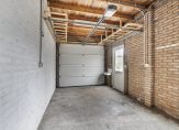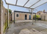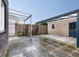 De grotendeels onderhoudsvrije achtertuin is gelegen op het noordwesten. De tuin is grotendeels betegeld en beschikt over een tweetal overkappingen. Achter in de tuin staat een vrijstaande stenen garage welke is voorzien van water en elektra en beschikt over een elektrisch bedienbare deur (2007). Voor de garage is een eigen parkeerplaats. Naast de woning is er ook nog een beschikking over een eigen parkeerplaats met carport (2008).