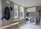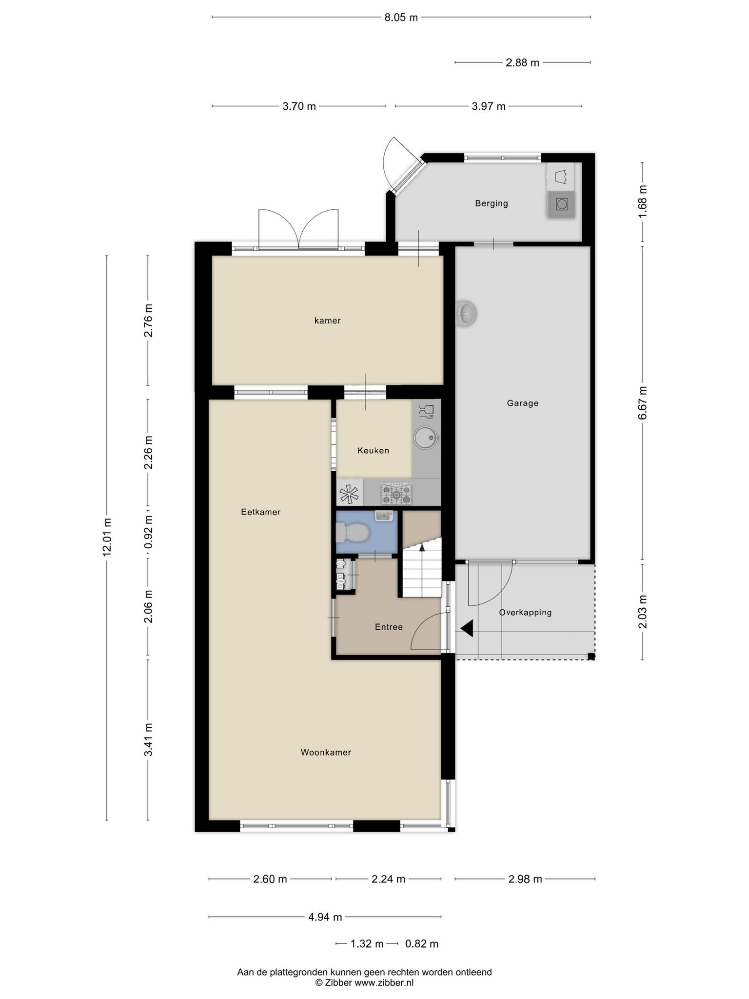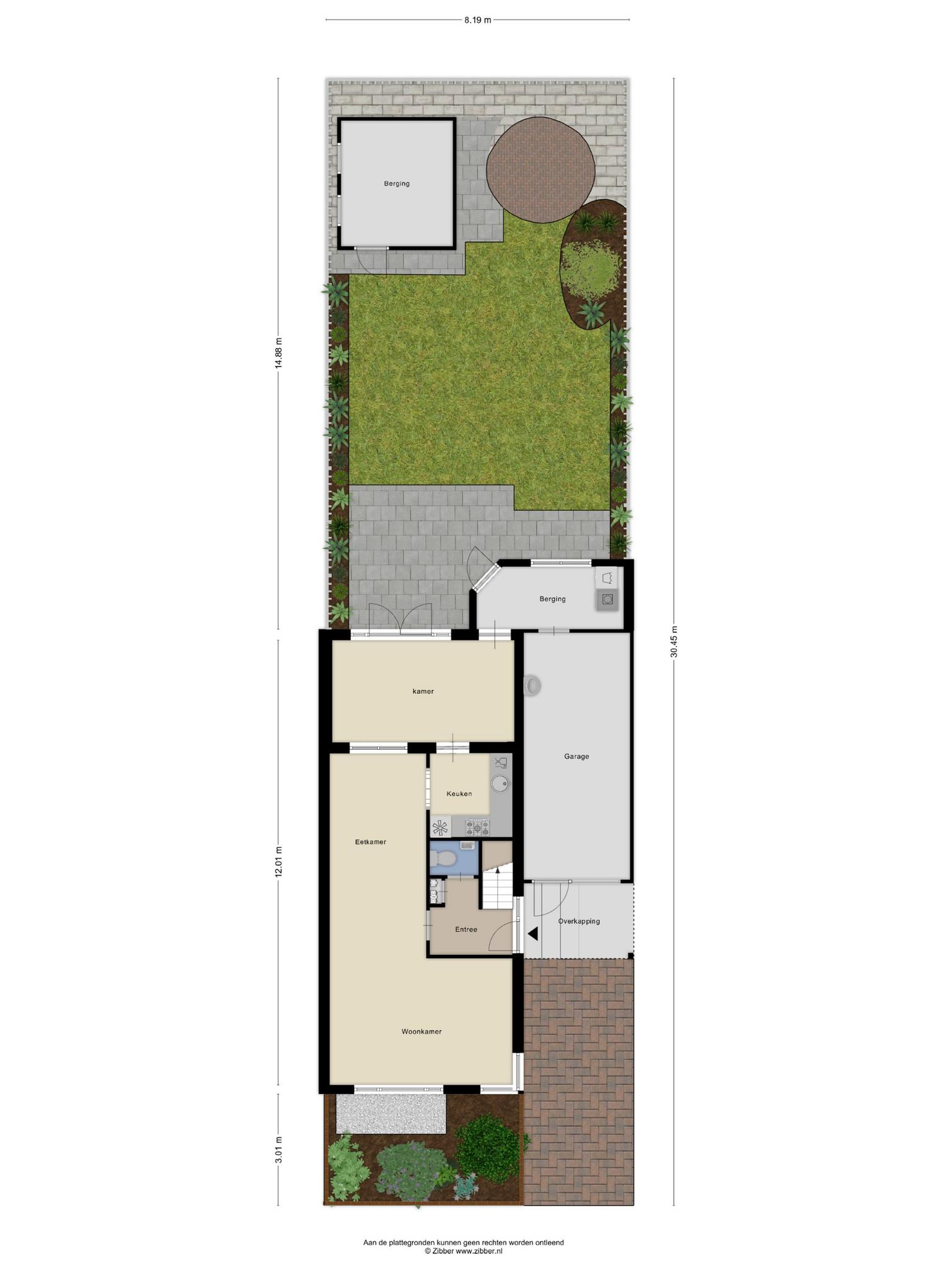 Hal met tegelvloer, meterkast, trapopgang naar de eerste verdieping, toiletruimte met toilet en fontein en toegang naar de woonkamer. Woonkamer voorzien van tegelvloer en voorzien van open keuken. De open keuken is voorzien van een keukeninrichting in hoekopstelling en beschikt over een hardstenen werkblad, gaskookplaat, afzuigkap, combi oven/magnetron, koelkast en vaatwasser. Aan de achterzijde is de woning flink uitgebouwd met een tuinkamer en bijkeuken. De heerlijk lichte tuinkamer heeft ook openslaande tuindeuren zodat er direct verbinding is met de tuin en het zonneterras. De praktische bijkeuken heeft ook ramen aan de tuinzijde en vanuit hier is zowel de garage als de tuin toegankelijk. U treft hier de witgoedaansluitingen en genoeg bergruimte. De begane grond (m.u.v. de garage) is afgewerkt met een tegelvloer voorzien van vloerverwarming. De garage heeft ook verwarming, water en elektra en beschikt aan de voorzijde over een stalen kantel/loopdeur.