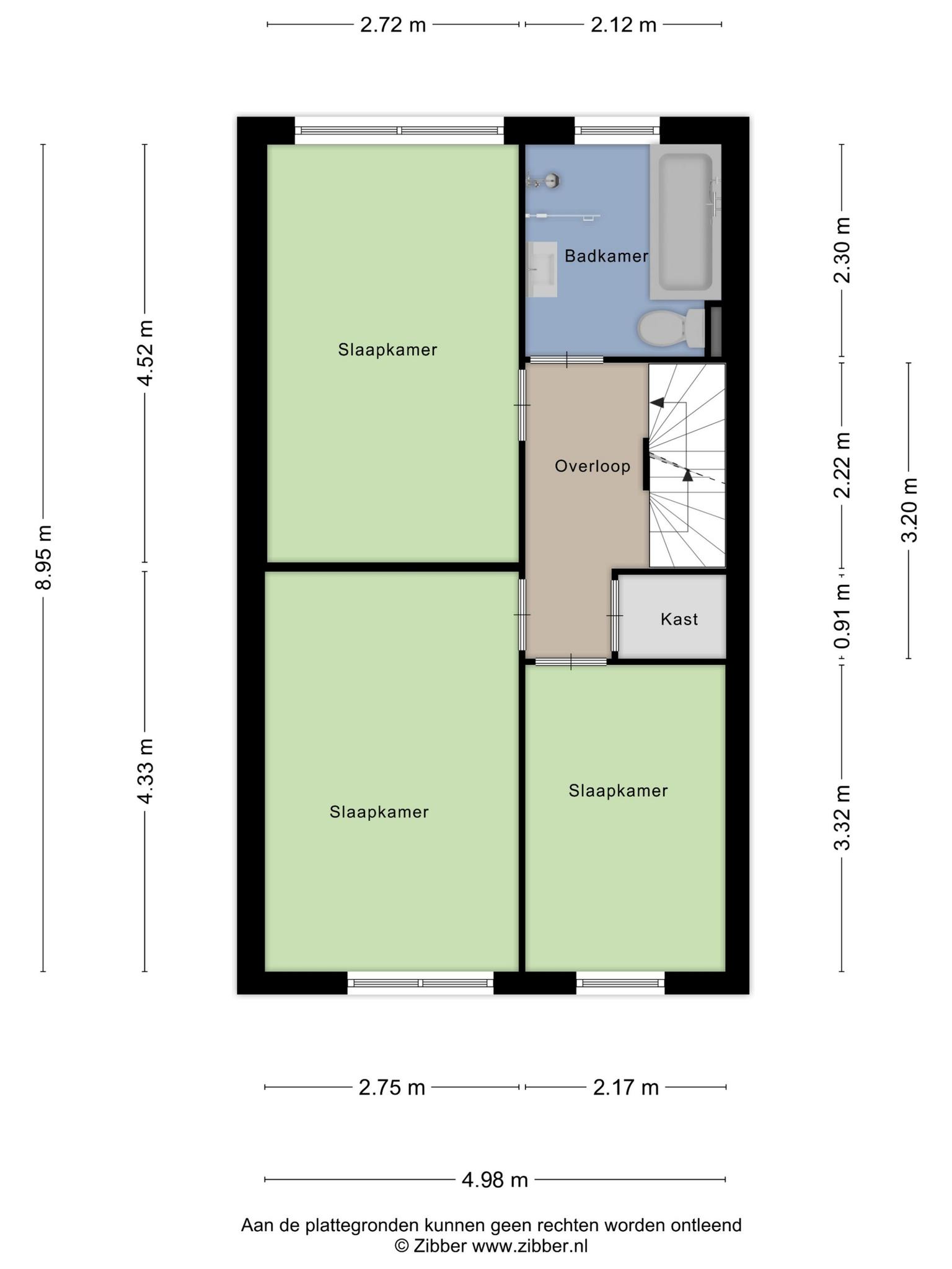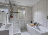 De overloop is voorzien van een vaste bergkast en heeft toegang tot drie slaapkamers en de badkamer. De slaapkamers zijn allen voorzien van kunststof kozijnen het HR-beglazing en rolluiken. De eenvoudige doch functionele badkamer is geheel betegeld en ingericht met een ligbad, douche, toilet en wastafel.