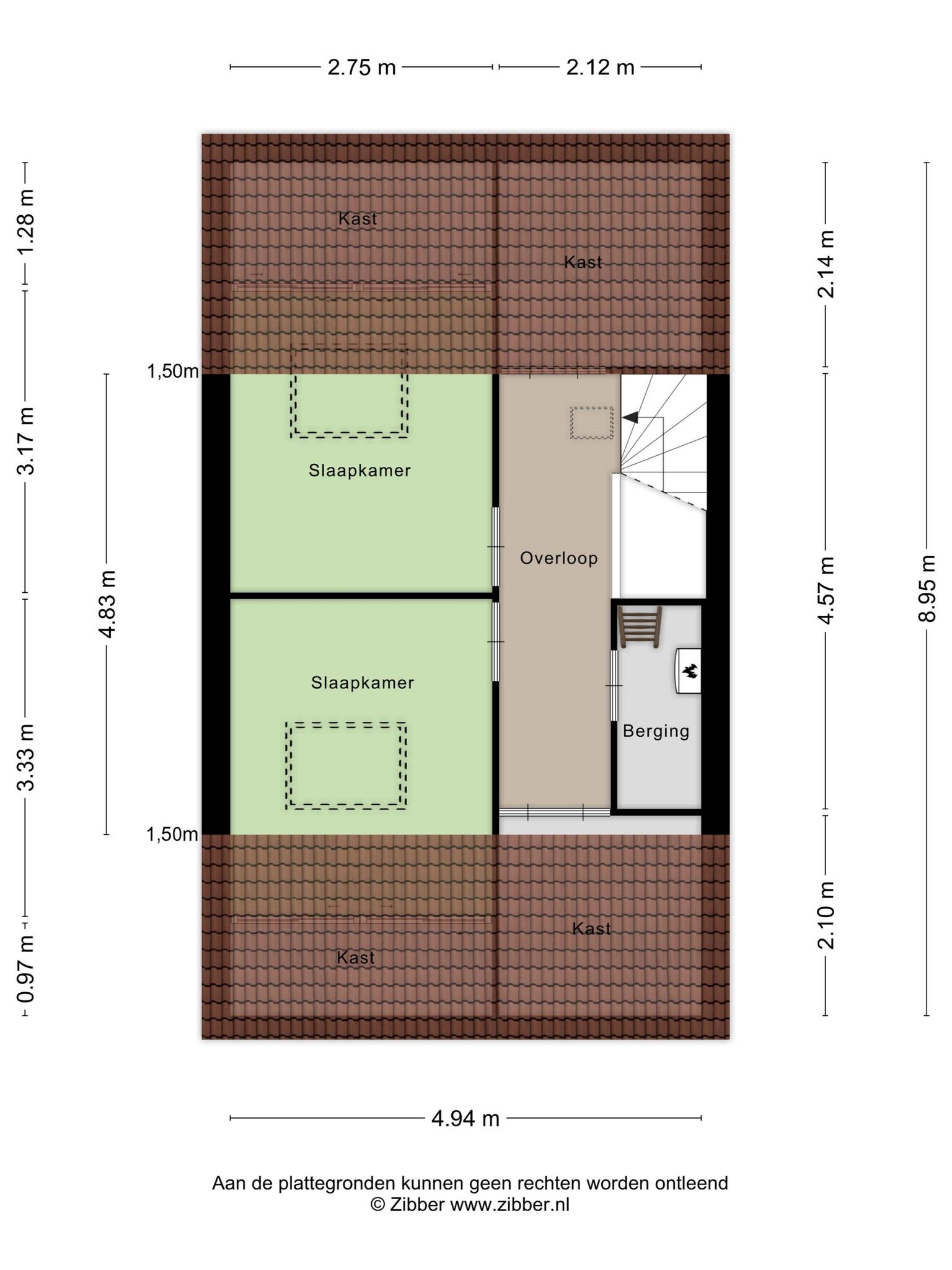 Via de overloop met klein dakraam is er toegang tot twee extra slaapkamers, een berging en is er bergruimte achter de knieschotten. De slaapkamers zijn beide voorzien van dakramen. In de bergkast op de overloop treft u de opstelling van de combiketel (Atag, 2023).