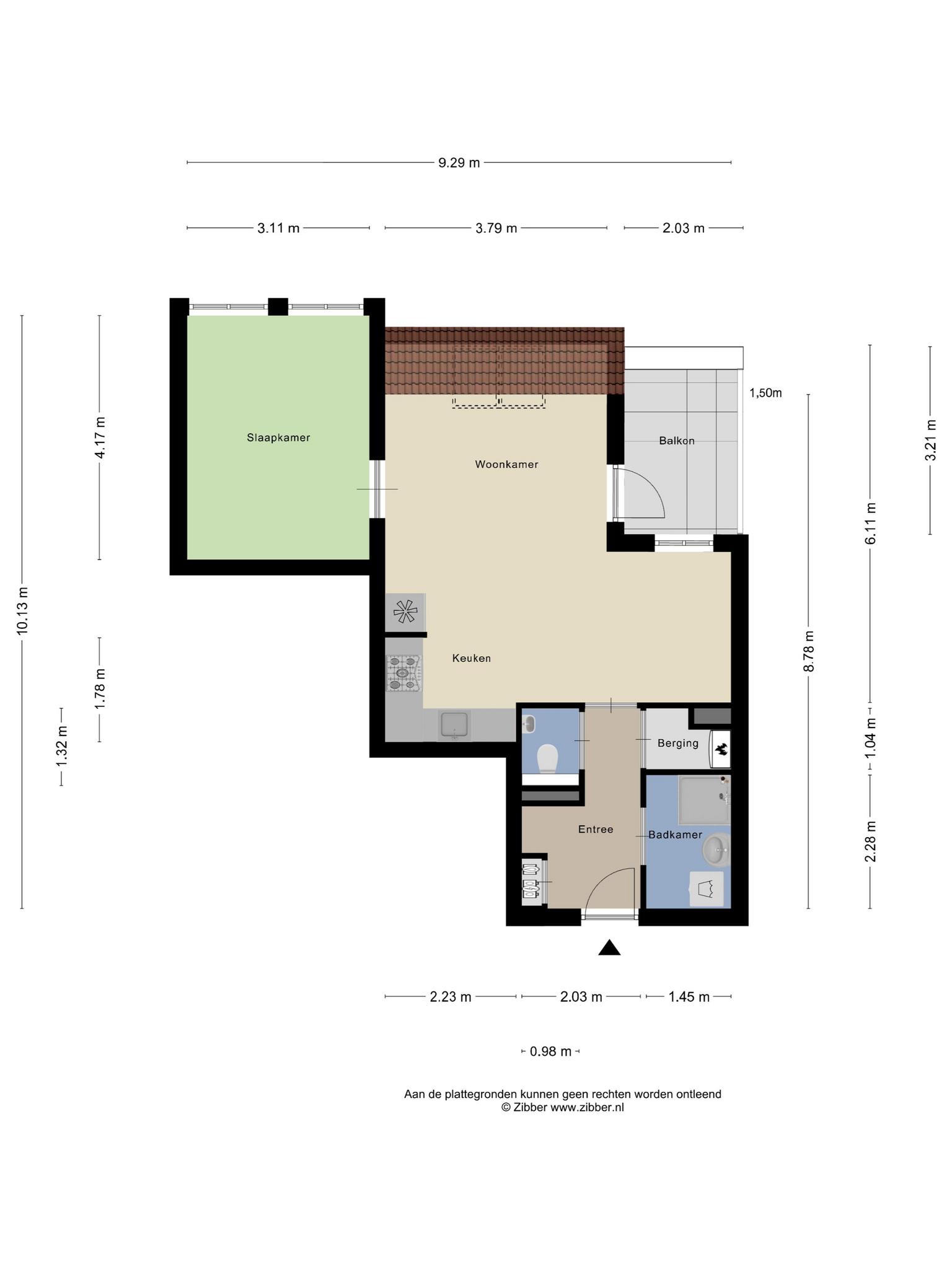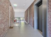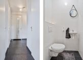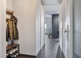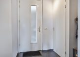 De entree van het appartement is gelegen aan een overdekte galerij. Bij binnenkomst in de hal is aan de linkerzijde gelijk een garderoberuimte en meterkast. Vanuit de hal is verder toegang tot een inpandige berging, badkamer en de woonkamer. In de berging hangt ook de Nefit combiketel uit 2008 en de afzuigunit die zorgt voor ventilatie in het appartement bij de sanitaire ruimtes en keuken.