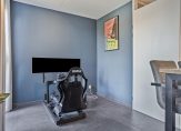 Vanuit de woonkamer is direct toegang tot een ruime slaapkamer van 13 m² met een laminaatvloer. De slaapkamer beschikt ook over een grote dakkapel In de gang/hal van het appartement is de badkamer. Deze inpandige badkamer is uitgevoerd met een douchecabine, wastafel en de aansluiting voor het witgoed.