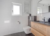 Via de overloop zijn 3 slaapkamers en de badkamer toegankelijk. De slaapkamers zijn respectievelijk 10.8, 8.6 en 7.5 m² groot en zijn allemaal gemoderniseerd en afgewerkt met laminaat en stukadoorde wanden en plafonds. De moderne badkamer is voorzien van een inloopdouche, wandcloset, wastafel met meubel en designradiator.