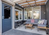 De tuin is aan de voor- en achterzijde onderhoudsvriendelijk en strak aangelegd. Aan de achterzijde is deze grotendeels betegeld en rondom voorzien van houten schuttingen met een poort om achterom te komen. De veranda aan huis is een heerlijk beschut plekje om te vertoeven. Ook is er veel privacy in de tuin.