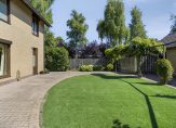 De tuin is verzorgd met veelal klinkerverharding en kunstgras. Zowel vanuit de Korenbloemstraat als vanuit de Gerststraat is de tuin toegankelijk. Het is een mooi formaat tuin met behoorlijke privacy.