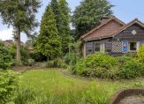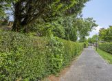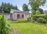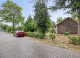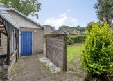 Rondom de woning ligt de tuin. Hier is veel groen, enkele terrassen en een vijver. Achter de woning staat een eenvoudige overkapping/berging met aansluitend een vrijstaande garage bestemd voor opslag-/stallingsruimte.
