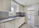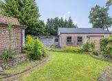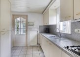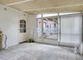 De dichte keuken heeft een functionele inrichting met gaskookplaat, combi oven/magnetron, koelkast en vaatwasser. Aansluitend is een bijkeuken met witgoedaansluitingen, Intergas combiketel uit 2020 en een toiletruimte. Vanuit de keuken kom je in de serre met rondom raampartijen gericht op de tuin. In de serre ligt ook een tegelvloer.