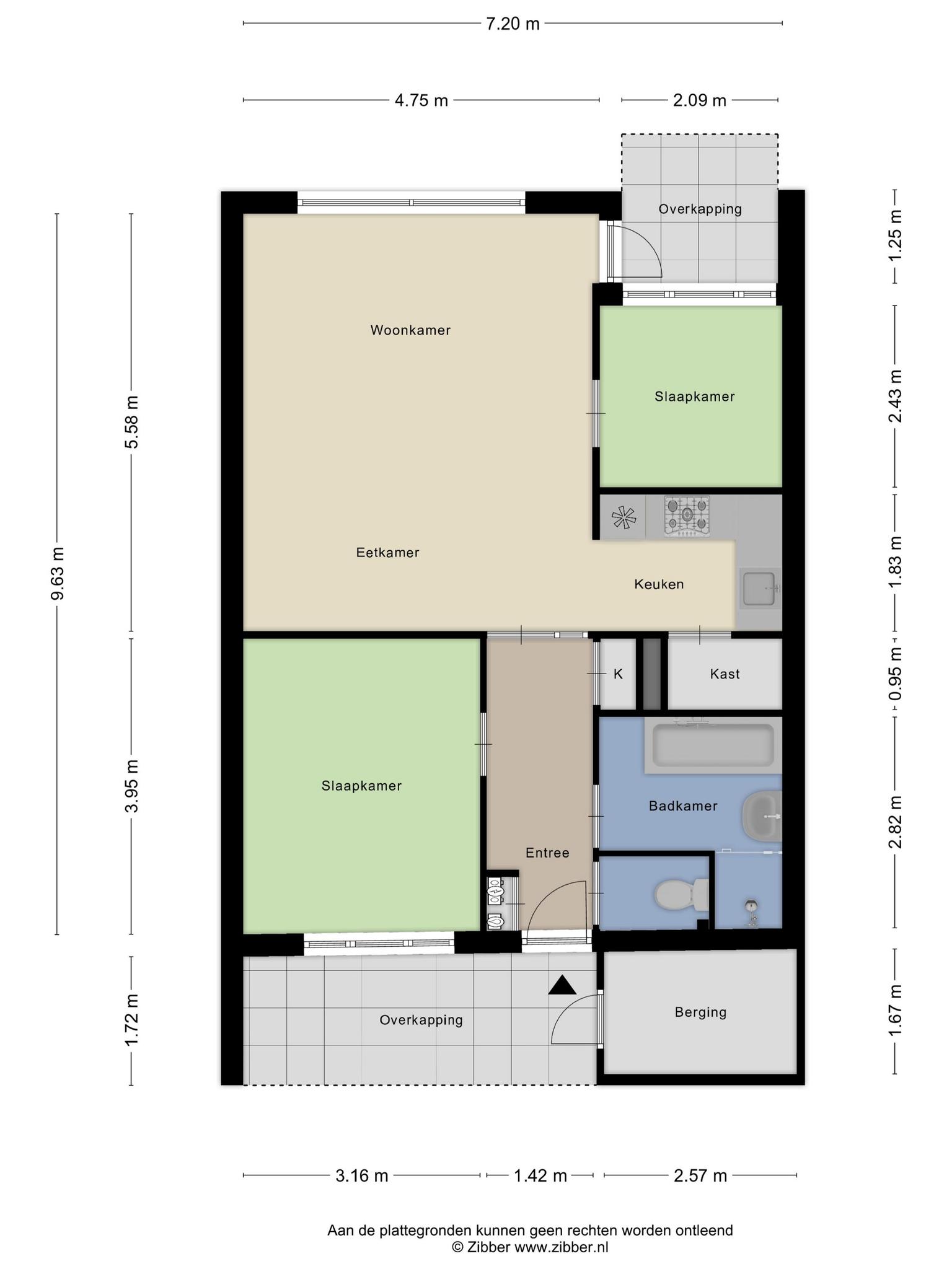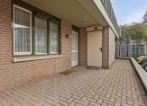 Bij de voordeur van het appartement is ook een overdekte plaats waar ook een mogelijkheid is om te gaan zitten. Hier is ook gelijk de berging gelegen, gemakkelijk dicht bij het appartement. In de berging hangen de nodige legplanken en er is ruimte voor stalling van fietsen.