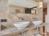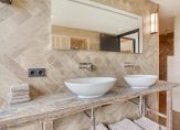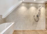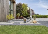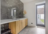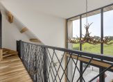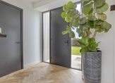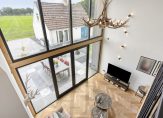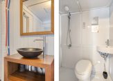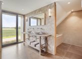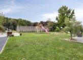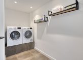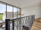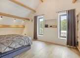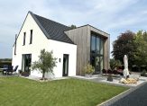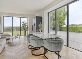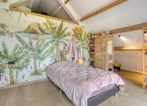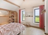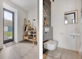 De royale overloop staat in open verbinding met de leefruimte en er is een prachtig uitzicht via de grote pui aan de achterzijde van de woning richting de tuin en de achterliggende weilanden. Op de verdieping zijn momenteel twee grote slaapkamers, waarbij het eenvoudig mogelijk is om hier drie slaapkamers van te maken door de grootste slaapkamer te splitsen. Er is een separate toiletruimte en een praktische wasruimte met aansluitingen voor wasmachine en droger. Dan is er nog een prachtige luxe badkamer met fraai meubel voorzien van twee waskommen, een ligbad en een riante doucheruimte met twee grote regendouches. Bijzonder is ook het grote raam met vrij uitzicht vanuit de badkamer.