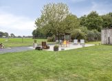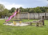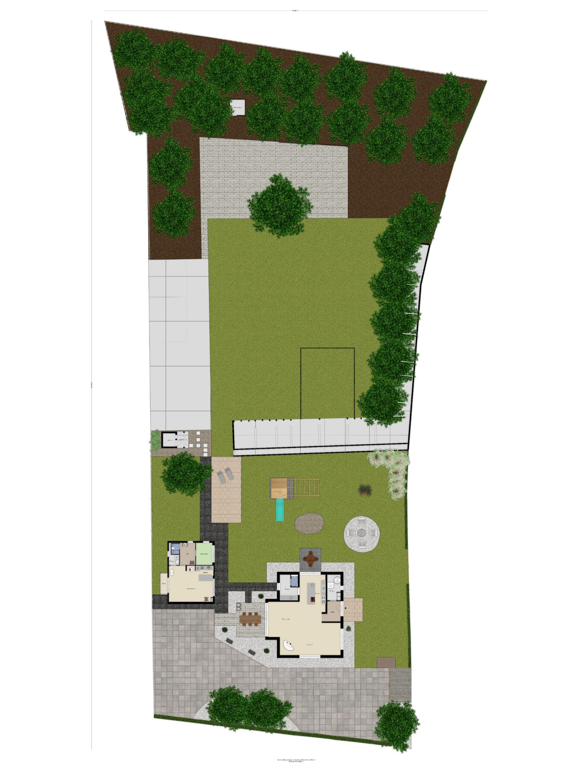 De tuin is rondom de woning gelegen en bestaat uit meerdere terrassen, een groot gazon, gezellige stookplaats en een heuse speelruimte voor kinderen. Links van de woning is elektrisch bedienbare stalen toegangspoort met aansluitende een grote oprit. Op het verharde erf is veel parkeergelegenheid. Aan de rechterzijde van het perceel is nog een groot terrein met eigen toegangspoort. Het terrein is voorzien van een groot grasveld en verder staan hier verschillende fruitbomen, een grote koepel volière en de nodige overkappingen. Dit terrein is uitermate geschikt voor het houden van dieren/vogels op eigen terrein en/of een grote moestuin. Er is zelfs ook nog een klein bosje op eigen terrein. Bijzonder is verder de volledig vrijheid rondom de woning.
