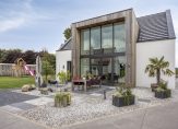 Deze stijlvolle woning met grote raampartijen en strak gestuukte gevels is oorspronkelijk gebouwd in 1941 maar vanaf 2019 volledig gerenoveerd/herbouwd en modern/luxe uitgevoerd. Naast luxe afwerkingen is de woning ook optimaal geïsoleerd bij gevels, vloer en dak (waarbij het dak zelfs een dubbel isolatiepakket is aangebracht). Alle hardhouten kozijnen zijn uitgevoerd met HR++ beglazing waarbij aan de achterzijde bij de grote pui ook nog extra zonwerend glas is toegepast. De woning heeft dan ook een energielabel A. Het gehele woonhuis is uitgevoerd met uitgebreide domotica van het merk ‘Casambi’. Hiermee is een compleet lichtplan aangebracht. Alle wanden en plafonds zijn strak gestukadoord in de woning, waarbij massief eiken balken zijn gebruikt om het geheel te accentueren. Ook de vloeren in de leefruimtes en slaapkamers zijn uitgevoerd met fraaie houten vloeren (op de begane grond in visgraat motief). In de woning is volledig vloerverwarming aanwezig met eigen thermostaten per ruimte en de installatie is voorbereid voor het aansluiten van een warmtepomp. Nu wordt de woning verwarmd door middel van een pellet cv.-installatie. Daarbij een combinatie met een 1000 liter buffervat ten behoeve van het warme water in de woning. Verder zijn kwalitatief hoogwaardige materialen gebruikt en is de woning luxe afgewerkt bij keuken en sanitair. Het gebruiksoppervlakte wonen is 239 m² waarvan 55 m² in gebruik als bijgebouw/gastenverblijf. De totale inhoud van de woning en bijgebouw is circa 983 m² en het perceel is maar liefst 4.185 m² groot. EEN STIJLVOLLE MODERNE WONING DIE VOLLEDIG VOLDOET AAN DE HUIDIGE WOONWENSEN.