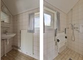 Op de eerste verdieping is een overloop met toegang tot drie slaapkamers, de badkamer en cv-kast. De badkamer beschikt over een douche en wastafel. De cv-kast is voorzien van opstelling CV-ketel (Vaillant, 2015) Er is een luik naar een vliering, maar die wordt niet gebruikt.