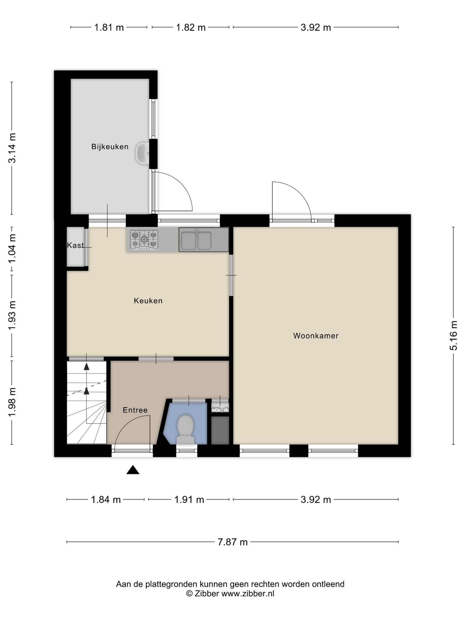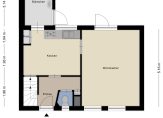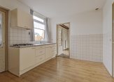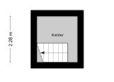 Hal met meterkast, toiletruimte, trapopgang naar verdieping en toegang tot de dichte keuken. De keuken is voorzien van een eenvoudig keukenblok en geeft toegang tot een echte provisiekelder. Vanuit de keuken is er toegang tot de woonkamer en bijkeuken/berging. De bijkeuken/berging is voorzien van witgoedaansluitingen en geeft toegang tot de tuin.