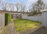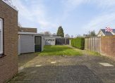 De tuin is diep en gelegen op het westen. In de tuin is een terras, gazon, twee stenen bergingen en een poort naar een voetpad zodat de tuin achterom bereikbaar is. Ook de voortuin is ruim, waardoor de woning een stukje van de weg af staat. Aan de straatzijde is parkeerruimte voor het huis.