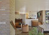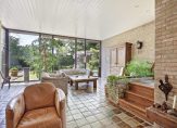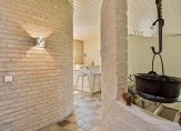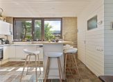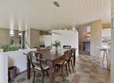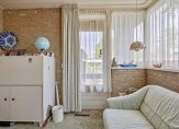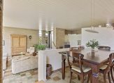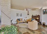 Er zijn meerdere zitjes, één bij de schouw met houtkachel. Vanuit deze open ruimte kunt u rechtstreeks de tuin inlopen. De grote ramen aan de achterzijde hebben zonwering en er is een airco in de huiskamer.