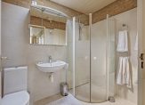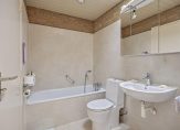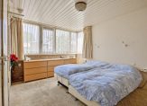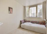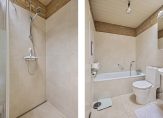 Op deze woonlaag zijn ook twee slaapkamers aanwezig. Vanuit hier gezien zijn er zowel ruimtes op een niveau hoger als lager. Op het hogere gedeelte vindt u slaapkamers nummer drie en vier. Één van deze slaapkamers heeft een balkon aan de voorzijde van de woning. Verder ligt hier ook de licht betegelde badkamer met toilet, ligbad, douche en wastafel.