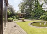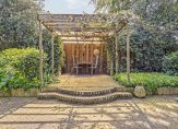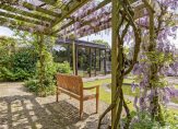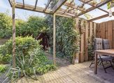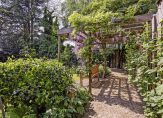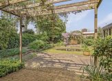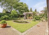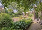 De tuin is onder architectuur symmetrisch aangelegd met mooie gebakken terrasstenen, een gazon, borders en een royale vijver. Daarnaast is er een begroeide pergola aanwezig en een overkapping met een extra zitje. Een beregeningsinstallatie met grondwaterpomp zorgt voor de bewatering. De tuin waarin u helemaal vrij zit is geheel omsloten en ligt op het zuidwesten.