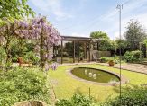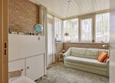 Indeling: De entree ligt verhoogd ten opzichte van de straat. Bij binnenkomst ziet u een ruime hal met kapstok en meterkast en keurige toiletruimte. De woonkamer is ruim; 45 m² groot. Opvallend is het hoge plafond wat een gevoel van ruimte creëert. Daarnaast springt de grote ramenwand die uitkijkt op de fraaie achtertuin in het oog. Ook bÃnnen is een boom aanwezig. Deze is ruim 50 jaar terug geplant en een echte eyecatcher.