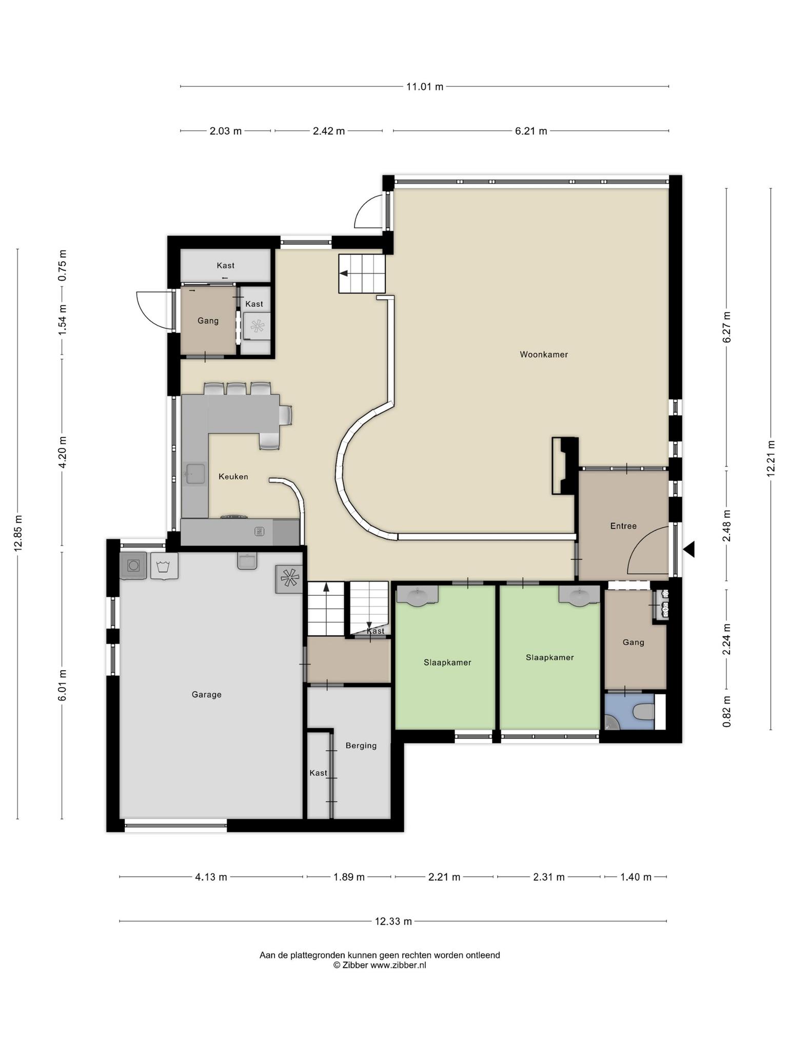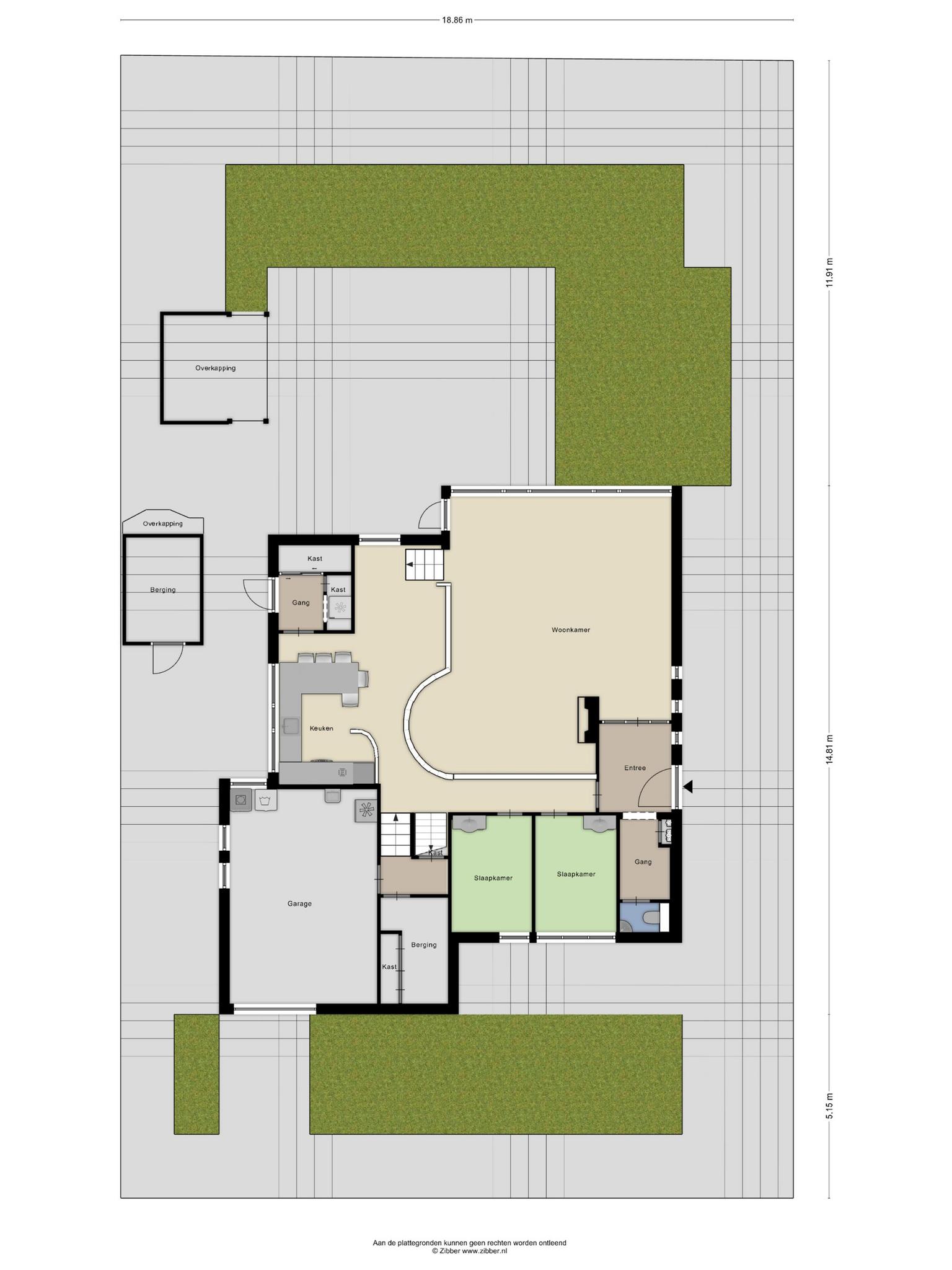 Hieronder, op het laagste niveau zijn twee zeer grote berg-/stallingsruimtes en een gang met vaste kast. Verder een donkere kamer en de inpandige berging/garage met op afstand bedienbare elektrische garagedeur. In deze ruimte zitten de aansluitingen voor wasmachine en droger.