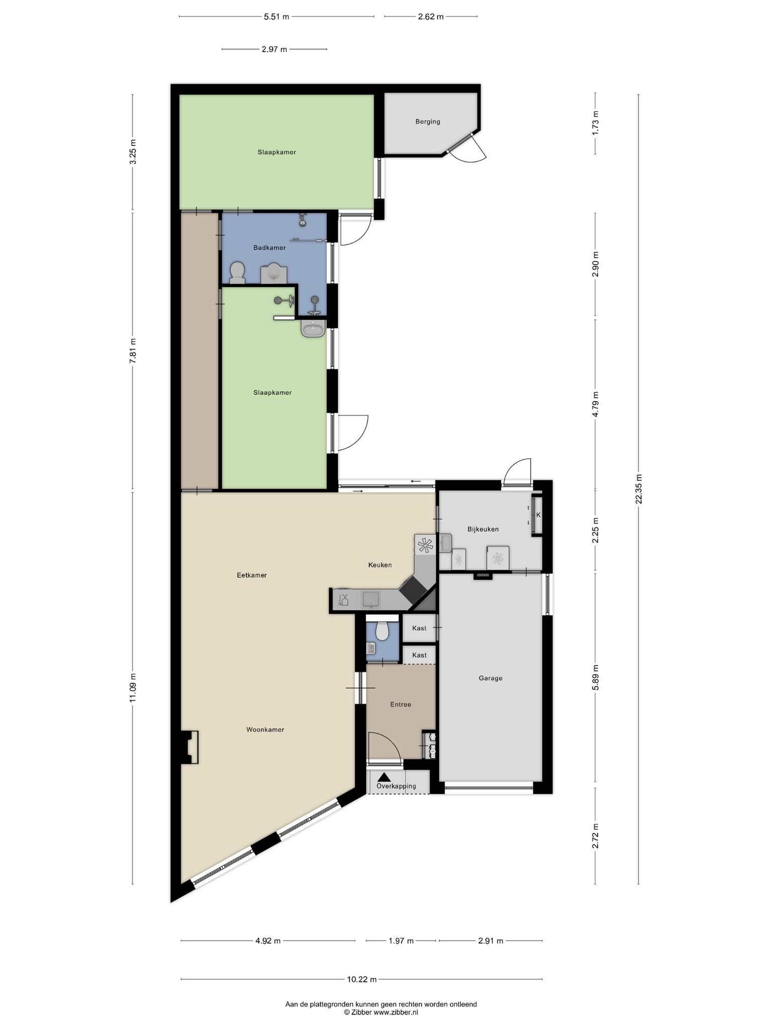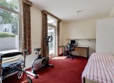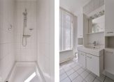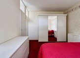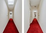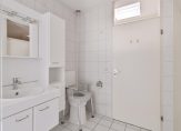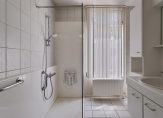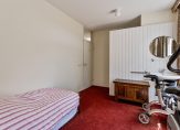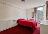 Vanuit het eetgedeelte is er toegang tot een gang voorzien van lichtkoepels met toegang tot de twee slaapkamers en de badkamer. De eerste ruime slaapkamer van circa 18 m² geeft direct toegang tot de badkamer en de tuin. De geheel betegelde badkamer is compleet ingericht met een douchecabine, inloopdouche, toilet en wastafel met wastafelmeubel. De tweede slaapkamer (voorheen twee slaapkamers) van circa 17 m² is eveneens zeer ruim en beschikt ook over een douche en wastafel en geeft eveneens toegang tot de tuin. Indien gewenst kan deze slaapkamer weer gesplitst worden.