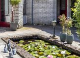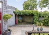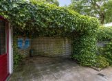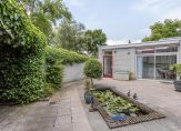 De geheel omsloten achtertuin met veel privacy is gelegen op het zonnige zuidoosten. De tuin is grotendeels betegeld en beschikt aan huis over een zonnescherm. Midden in de tuin is een vijver gelegen en achter in de tuin bevindt zich nog een aangebouwde stenen berging met elektra voor het opbergen van onder andere tuingereedschap. Door de hoekligging beschikt deze woning over een achterom, dit is uniek omdat veel bungalows een geheel omsloten tuin hebben.