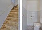 Op de 1e verdieping is een ruime overloop met toegang tot 3 slaapkamers, de badkamer en een cv-ruimte. Er zijn 3 slaapkamers aanwezig van ca. 7, 10.3 en 12.6 m² groot. De in 2012 vernieuwde badkamer is geheel betegeld en ingericht met inloopdouche, wandcloset, wastafel met meubel en designradiator. In de cv-ruimte hangt de combiketel (Nefit topline bj. 2008) en hier treft u ook de wasmachine-aansluiting.