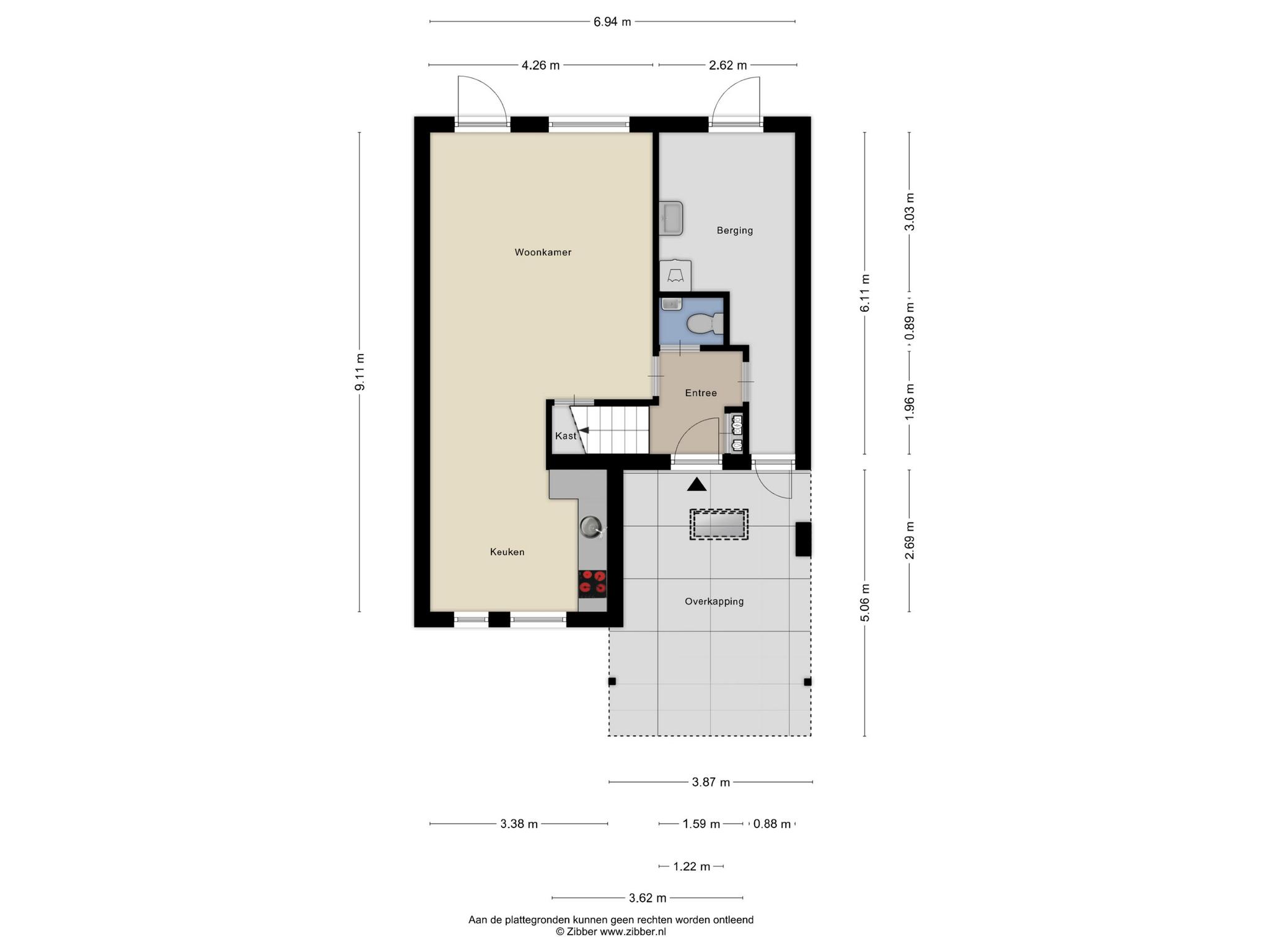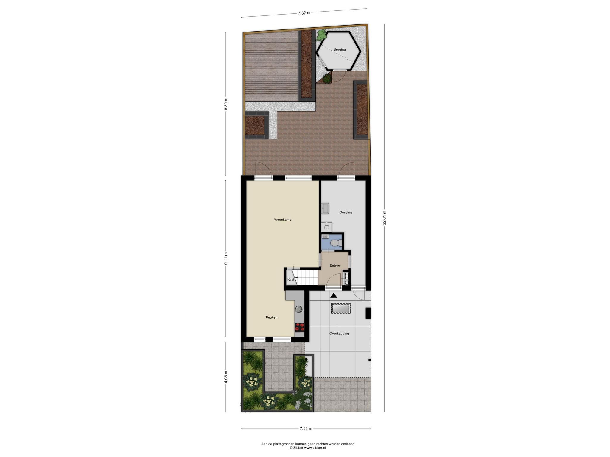 De woonoppervlakte bedraagt 95 m² en de gebouwgebonden buitenruimte 18 m² (=carport). Het perceel is 161 m² groot.