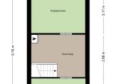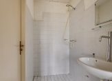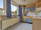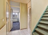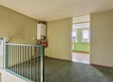 Hal met meterkast, toiletruimte, woonkamer met tegelvloer gelegen aan de tuinzijde en halfopen keuken aan de straatzijde. In de open keuken is een keukeninrichting in hoekopstelling voorzien van koelkast en gaskookplaat. Vanuit de hal is ook toegang tot een slaapkamer van 12 m² en een badkamer met douche en wastafel. Op de verdieping is een ruime overloop met toegang tot twee slaapkamers van respectievelijk circa 9 en 12 m².
