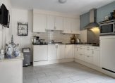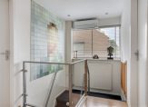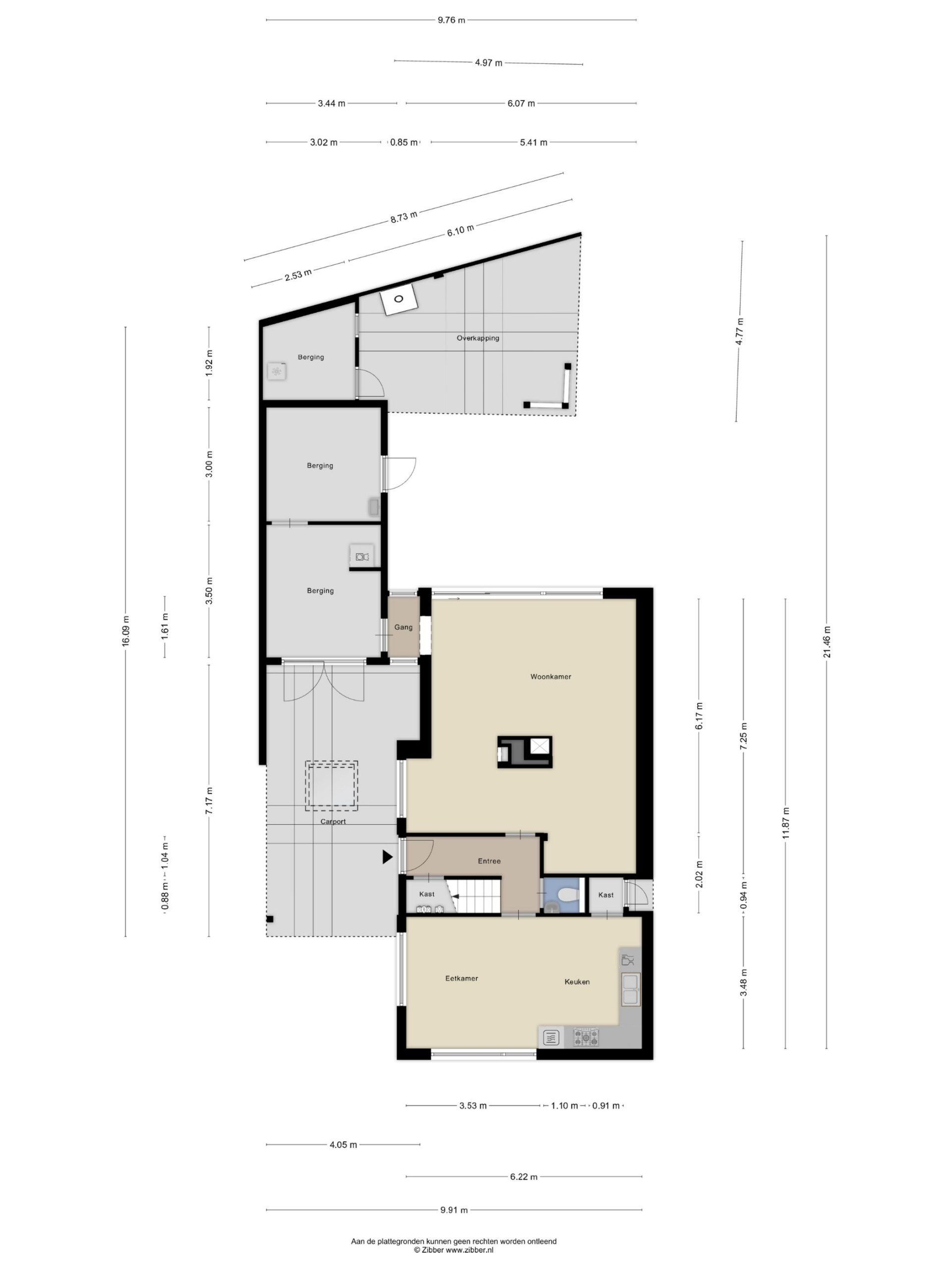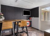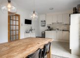 Hal met meterkast en keurige toiletruimte voorzien van wandcloset en fontein. Aan de voorzijde van de woning bevindt zich de ruime woonkeuken welke ruimte biedt voor een grote eettafel en verder is voorzien van een keukeninrichting met vaatwasser, gaskookplaat, koelkast en dubbele RVS spoelbak. De woonkamer is ruim 36 m² groot en is voorzien van een grote aluminium schuifpui naar de tuin en sfeervolle schouw met gashaard. Er is vloerverwarming met een lichte tegelvloer aanwezig over de gehele benedenverdieping. Via een portaal vanuit de woonkamer is toegang tot een berging/bijkeuken met aansluitingen voor het witgoed, stallingsruimte en openslaande deuren naar de oprit met carport. Aansluitend is een prettige tuinkamer annex hobbyruimte met vloerverwarming en deur naar de tuin. Dit is een ideale plek voor een speel-/chill- of werkruimte.