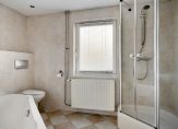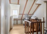 Op de 1e verdieping is de overloop met toegang tot de badkamer en 3 slaapkamers. Eén slaapkamer heeft een vaste kast. De keurige badkamer is compleet uitgevoerd met douche, ligbad, wastafel en wandcloset. Via een vaste trap is toegang tot de 2e verdieping, hier treft u nog een grote 4e slaapkamer met dakkapel. Op de overloop hangt de hybride warmtepomp.