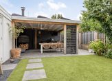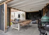 De tuin is circa 10 meter diep en lekker zonnig. De onderhoudsvriendelijke tuin is strak aangelegd met een terras, kunstgras gazon en een prachtige massief eikenhouten veranda met berging/buitenkeuken. Deze veranda is een paar jaar terug gebouwd, erg sfeervol en een prachtige toevoeging aan de leef-/buitenruimte van deze woning.