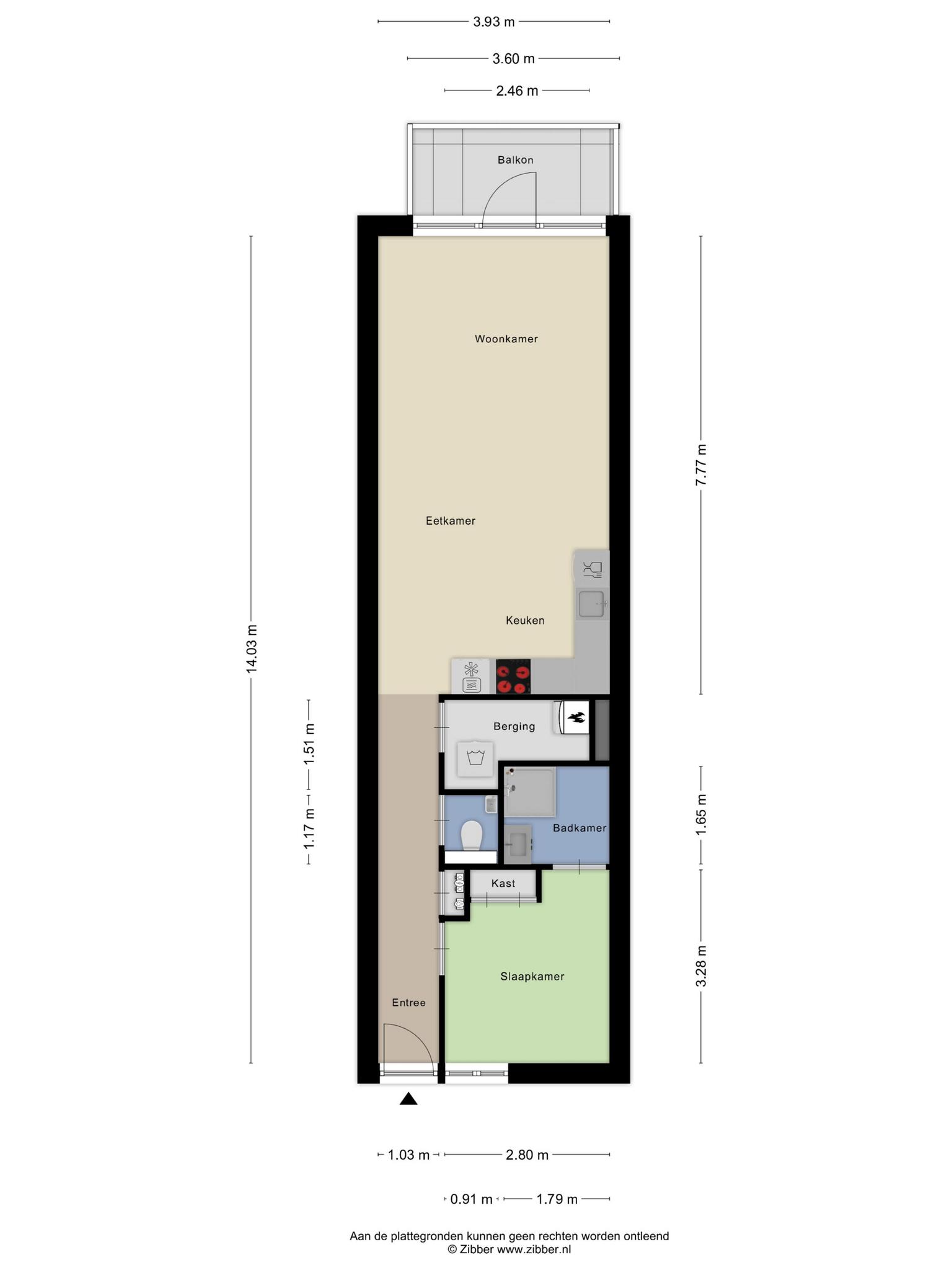 Het balkon, de gebouwgebonden buitenruimte is 6 m² groot.