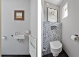 Via een gang met eveneens een eikenhouten vloer is er toegang tot een trapkast, toiletruimte voorzien van wandcloset en fontein en is er de trapopgang naar tweede verdieping.