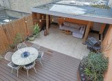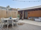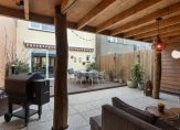 Het dakterras is zeer ruim, is gelegen op het zuiden en biedt veel privacy. Het dakterras is zeer fraai en sfeervol aangelegd en aan de woning voorzien van een groot terras voorzien van duurzame composiete vlonders, een zonnescherm aan de gevel en planten borders. Achter op het dakterras staat een grote overkapping met keramische tegels, dit is een ideale plek voor een grote loungebank. Vanuit het dakterras is er toegang tot een berging geschikt voor opslag.