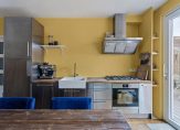 Via de trapopgang komt u op het grote dakterras. Vanaf het dakterras is de entree van de woning bereikbaar. De woning betreedt u door de schuifpui bij de keukenruimte, welke aan de achterzijde is gelegen. De keuken is voorzien van een recht RVS keukenblok met houten werkblad, 5 pits gaskookplaat, oven, afzuigkap, koelkast en vaatwasser. De woonkamer met open keuken is totaal circa 41 m², waarbij de woonkamer is gelegen aan de voorzijde van de woning met mooi uitzicht over de galerij. De grote raampartijen zorgen voor veel lichtinval in de woning. Op de vloer ligt een mooie en sfeervolle parketvloer.