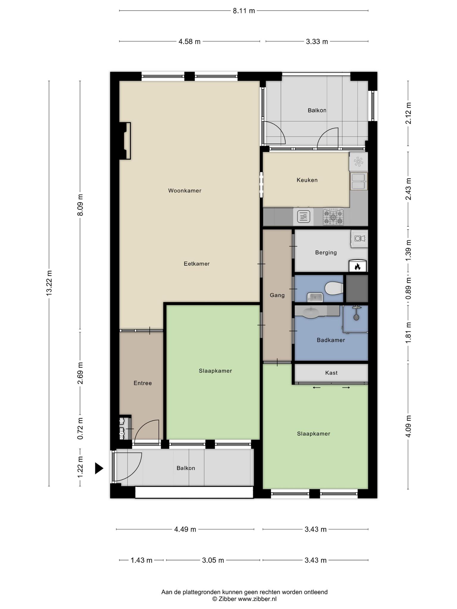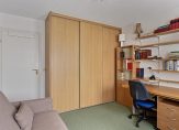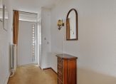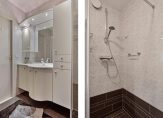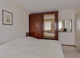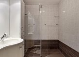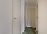 Een gang geeft toegang tot een berging/bijkeuken, toiletruimte, badkamer en 2 slaapkamers. De berging/bijkeuken kan ook was-/cv.-ruimte worden genoemd. Naast het witgoed, hangt hier de Intergas HR combiketel en de unit van de mechanische afzuiging. De badkamer is uitgevoerd met een grote inloopdouche en wastafel met meubel. Daarnaast is er nog een separaat toilet. Beide slaapkamers zijn erg ruim (respectievelijk circa 11 en 14 m² groot) en aan de rustige zijde van het complex gelegen. Daarbij heeft één slaapkamers een vaste (schuif-)kast.