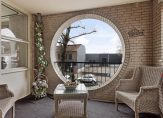 Hal met meterkast, ruime woonkamer van ca. 38 m² met grote raampartijen en uitzicht naar de Marktstraat en de Prior van Milstraat. Vanuit de woonkamer is rechtstreeks toegang tot het balkon/loggia. Aan de voorzijde is een grote ronde opening en aan de zijkant is nog een raamkozijn geplaatst. Een heerlijke ruimte om buiten te kunnen zitten en toch beschut.