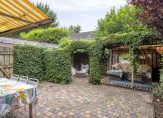 De zonnige achtertuin is onderhoudsvriendelijk aangelegd met een terras aan huis met zonneluifel en een eenvoudige overkapping. Deze tuin is via een voetgangersgebied vanuit de zijkant te bereiken. In de voortuin is een parkeerplaats op eigen terrein gelegen en de voortuin is voorzien van een gazon.