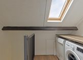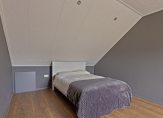 Overloop met dakraam, opstelling combiketel (Nefit, 2018), mechanische ventilatie-unit en de witgoedaansluitingen. Vanuit de overloop is er toegang tot de slaapkamer en badkamer. De slaapkamer is 16 m² groot, beschikt over een groot dakraam. Op de vloer ligt laminaat en er zijn twee vaste kasten gemaakt. Tot slot is er nog de ruime badkamer voorzien van een ligbad, douchecabine, wandcloset en wastafel.
