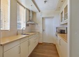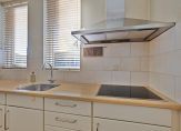 U komt binnen in de hal. Hier treft u de meterkast, garderobe en de geheel betegelde toiletruimte met wandcloset en fontein. De ruime woonkamer van 33 m² groot heeft een speelse indeling en omdat het een hoekwoning betreft heeft u niet alleen ramen aan de voorzijde en achterzijde maar ook in de zijgevel. Hierdoor is het heerlijk licht binnen en heeft u een leuk uitzicht. De woonkamer is afgewerkt met een stucwerkplafond, spachtelputz wanden en mooie eikenhouten vloerdelen. Aan de tuinzijde van de woning is de halfopen keuken. Deze is voorzien van een keurige inrichting met inductiekookplaat, afzuigkap, losse oven, vaatwasser en koelkast. Naast de keuken is ruimte voor een eethoek of leuke werkplek aan de tuinzijde. Direct aansluitend bij de keuken is de berging/bijkeuken. Een zeer praktische ruimte met aansluitingen voor het witgoed, de opstelling van de combiketel (Atag 2008), volop bergruimte en toegang naar de tuin.