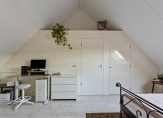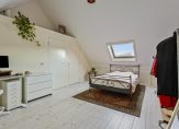 Deze verdieping beschikt over de derde slaapkamer welke ruim van formaat is en is voorzien van laminaatvloer, Velux dakraam en schuifkasten onder de schuine dak delen en beschikt over een vaste kast.