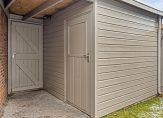 De tuin is gelegen op het noordoosten en voorzien van een groot terras, een klein gazon en houten schuttingen. In de tuin staat een houten tuinberging met elektra voor opslag van uw tuinspullen dan wel stalling van uw fiets. De woning beschikt tevens over een eigen achterom. Aan de voorzijde zijn voldoende parkeerplaatsen aanwezig.