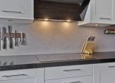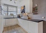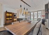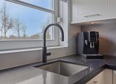 Hal met laminaatvloer, meterkast, moderne en luxe toiletruimte voorzien van wandcloset en fontein, trapopgang naar eerste verdieping en toegang tot de woonkamer. De woonkamer met uitbouw is eveneens voorzien van dezelfde laminaatvloer, gestukadoorde wanden, een praktische trapkast en fijne openslaande deuren naar de tuin. Aan de voorzijde van de woning ligt de open keuken met moderne keukeninrichting voorzien van hardstenen werkblad, inductiekookplaat (2023), afzuigkap, combi oven/magnetron (2020), grote koelkast, vrieskast, quooker en vaatwasser (2022). De woning is aan de achterzijde drie meter uitgebouwd, waardoor er een mooie ruime leefruimte is, met mooi zicht op de tuin.