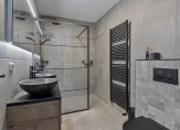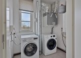 Overloop met laminaatvloer en toegang tot twee slaapkamers, de badkamer, cv-/wasruimte en vaste trap naar de tweede verdieping. Beide slaapkamers zijn voorzien van laminaatvloeren en beschikken over zonne screens. De geheel betegelde moderne en luxe badkamer uit 2020 is voorzien van een ruime inloopdouche, wandcloset, wastafelmeubel met 2 waskommen, verwarmde spiegel en designradiator. In de cv/was ruimte is de opstelling van de AWB combiketel (2008) en de WTW unit. Hier zijn ook de aansluitingen voor de wasmachine. Een hele praktische ruimte!