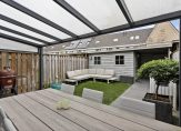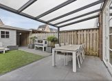 De tuin is gelegen op het noordoosten en voorzien van een groot terras aan huis met een mooie aluminium overkapping voorzien van verlichting. Verder beschikt de tuin over kunstgras en houten schuttingen. Achter in de tuin staat een houten tuinberging met elektra voor opslag van uw tuinspullen dan wel stalling van uw fiets. De woning beschikt tevens over een eigen achterom. Aan de voorzijde zijn voldoende parkeerplaatsen aanwezig.